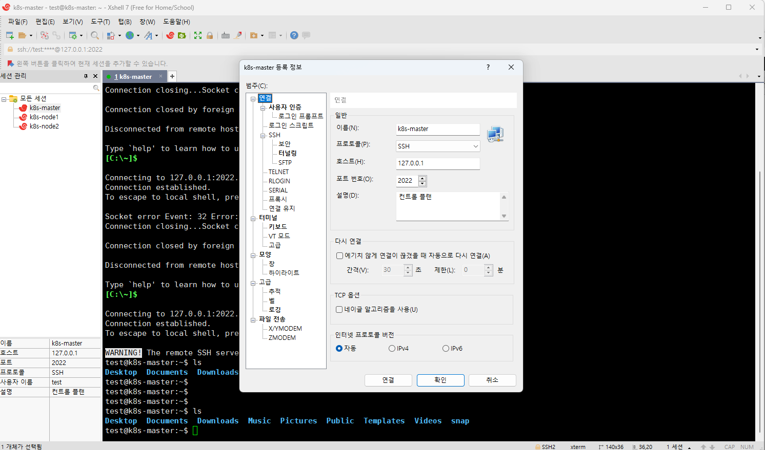 그리고 위 사진 처럼 외부 SSH 툴에서 접속하면 접속이 됩니다.